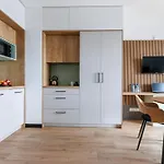 Jedzenie można przygotować w aneksie kuchennym. Przystanek 1632 - Wspa 02 to o rzut beretem od Zeus Apartments.
